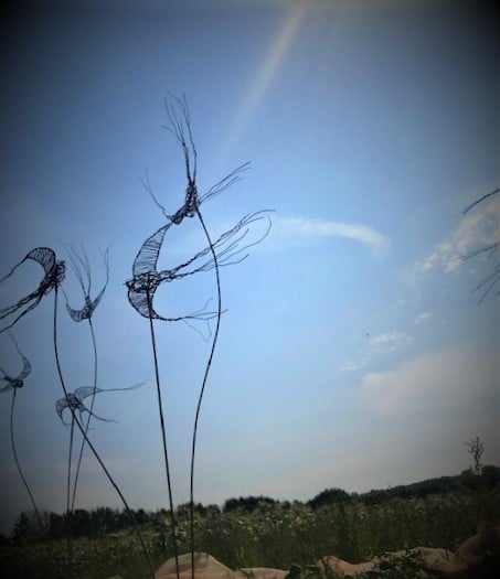 Wire swallow sculpture for the garden that was featured at the wonderful Darts Farm Sculpture trail in Topsham, Devon.